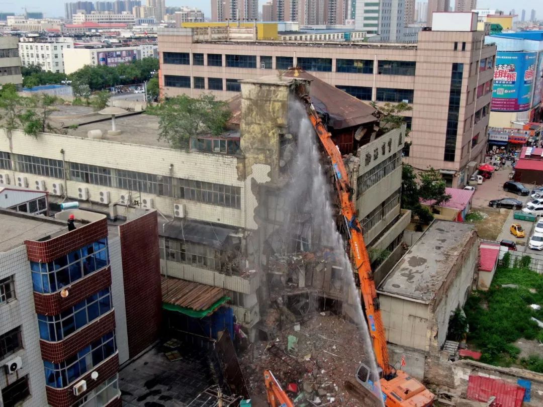? ?At 5:00 p.m. on August 11, the demolition operation of the south side of Bohai Building was successfully completed. In this operation, the clearance between the buildings is small, the construction work surface is narrow and difficult to operate. Haijiang Group, after many arguments, decided to use the latest intelligent hydraulic shears with the new process of load shifting directional lowering, successfully solved the problems.