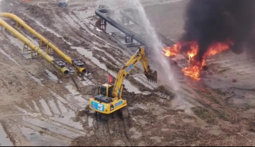 熊熊大火依然在燃燒,這是一場(chǎng)與時(shí)間的賽跑,一場(chǎng)與生命的較量。應(yīng)急搶險(xiǎn)救援隊(duì)伍奮戰(zhàn)在一線,在人員無(wú)法涉及的危險(xiǎn)區(qū)域里,海江集團(tuán)爭(zhēng)分奪秒第一時(shí)間調(diào)集機(jī)械設(shè)備進(jìn)入現(xiàn)場(chǎng)配合救援行動(dòng)。運(yùn)用5G遠(yuǎn)程操控系統(tǒng),在廣州智能指揮中心控制無(wú)人智能機(jī)械,對(duì)事故地點(diǎn)進(jìn)行圍堰作業(yè),阻隔火勢(shì)蔓延,防止危化品流入河流、下水道等區(qū)域,避免次生災(zāi)害的發(fā)生。