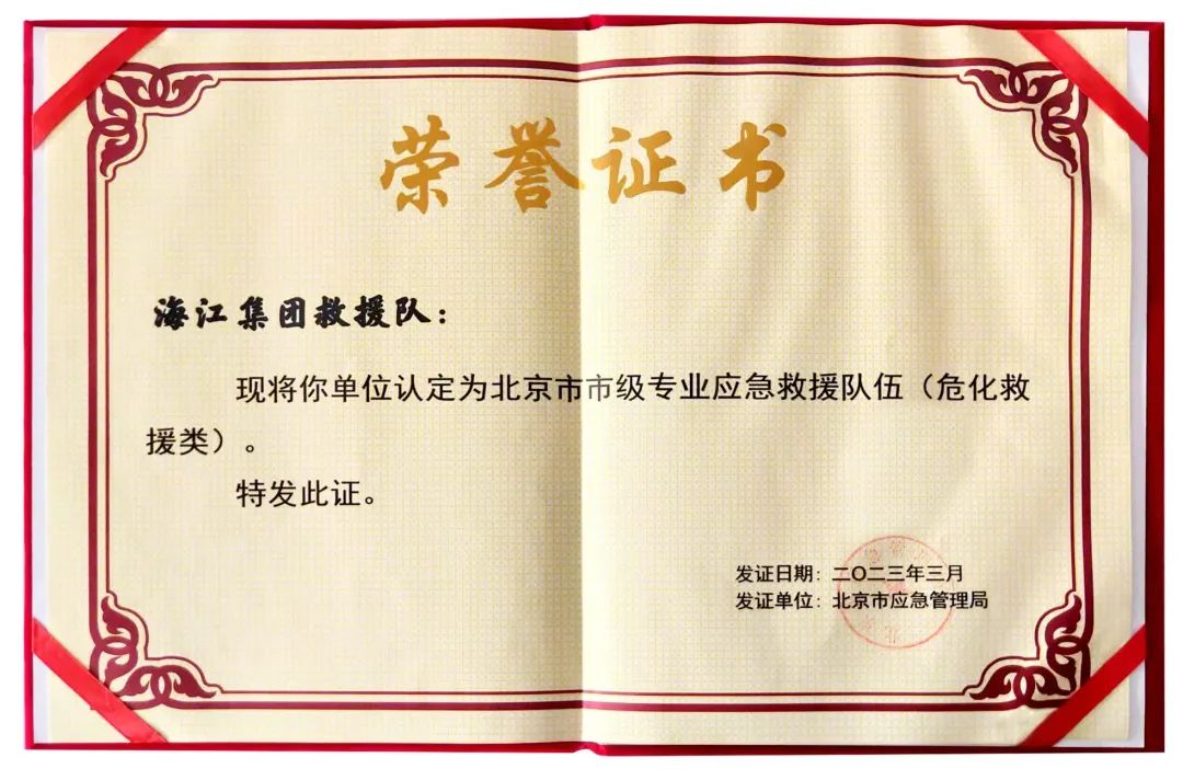 ? ? 近日,北京市應(yīng)急管理局授予海江集團(tuán)救援隊(duì)為“北京市市級(jí)專業(yè)應(yīng)急救援隊(duì)”,這是對(duì)海江集團(tuán)應(yīng)急救援力量莫大的肯定。海江集團(tuán)救援隊(duì)也將再接再厲,持續(xù)把建設(shè)專業(yè)應(yīng)急救援隊(duì)伍作為一項(xiàng)重要工作,扎實(shí)推進(jìn)專業(yè)應(yīng)急救援隊(duì)伍建設(shè)。