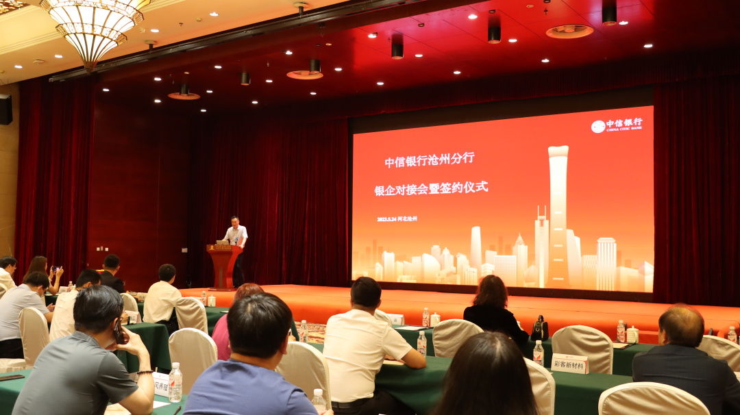 ? ? 5月24日下午,海江集團黨支部書記高琪鎣,財務(wù)部副經(jīng)理徐艷霞,企管部副經(jīng)理張博江等人受邀參加,中信銀行滄州分行在滄州市金獅國際酒店舉行的“產(chǎn)融對接會暨銀企簽約儀式”并現(xiàn)場簽約。中信銀行滄州分行黨委書記、行長盧治乾、副行長張曉林等領(lǐng)導(dǎo)出席活動并致辭。