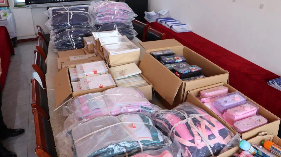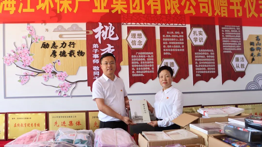 ? ? 海江集團黨支部書記高琪鎣、企業(yè)管理部副經(jīng)理張博江代表海江集團為滄州學生們送去書包、文具等學習生活用品和《行走的目光》《老家的味道》《明月滿滄州》等1500余冊書籍。