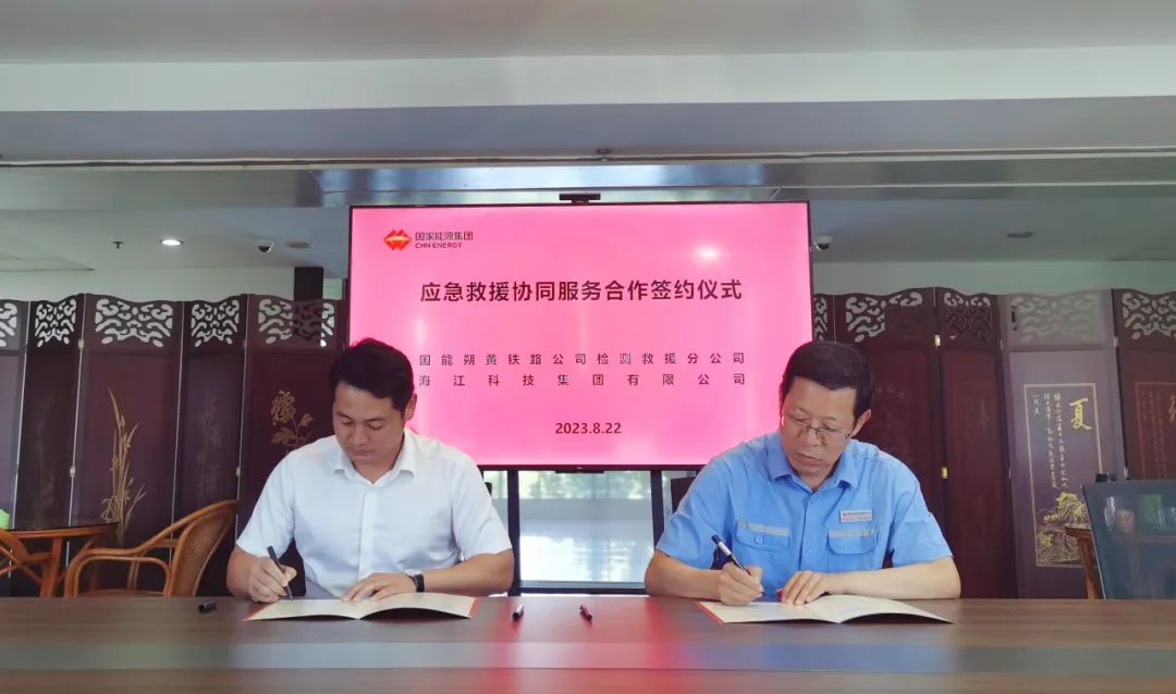 ? ? ? ?為進(jìn)一步加強(qiáng)應(yīng)急救援隊(duì)伍建設(shè),發(fā)揮專業(yè)救援隊(duì)伍的裝備優(yōu)勢與技術(shù)優(yōu)勢,提升朔黃鐵路公司綜合應(yīng)急救援能力,確保發(fā)生生產(chǎn)安全事故時(shí)能夠及時(shí)有效救援,最大限度保障鐵路運(yùn)輸安全、暢通,8月22日上午,國能朔黃鐵路公司檢測救援分公司、海江科技集團(tuán)有限公司應(yīng)急救援協(xié)同服務(wù)合作簽約儀式正式舉行。