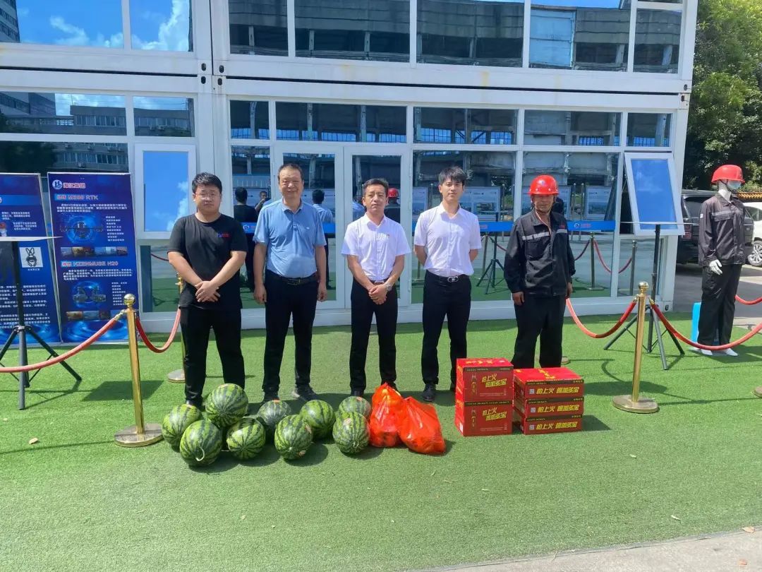 ? ? ? ?立秋雖過,但高溫仍持續(xù)在線。為切實做好夏季防暑降溫工作,持續(xù)加強對集團員工的團結凝聚和關心關愛,保障廣大干部員工生命安全和身體健康,海江集團總經理褚龍和黨支部書記高琪鎣、工程部經理竇曉等公司高層領導先后奔赴各項目部,看望慰問堅守在生產作業(yè)一線的員工們,為大家送上慰問品,感謝大家的辛勤付出。