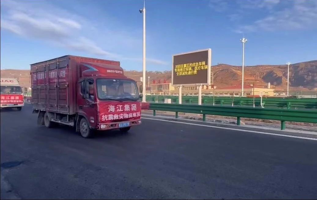 ? ? ? ?抗震救災(zāi),刻不容緩。12月25日,海江集團(tuán)物資車隊(duì)疾馳近兩千公里,目前已到達(dá)甘肅省臨夏州積石山縣,向當(dāng)?shù)刂驹刚咭平晃镔Y。