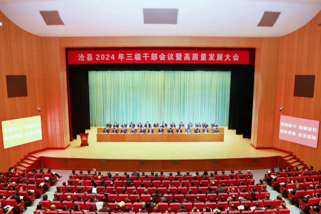 ? ? ? ? 2024年3月11日,滄縣2024年三級(jí)干部會(huì)議暨高質(zhì)量發(fā)展大會(huì)在滄州國(guó)際會(huì)議中心大禮堂隆重召開(kāi)。滄縣縣委書(shū)記楊猛,縣委副書(shū)記、縣長(zhǎng)穆春江,縣人大常委會(huì)主任董永盛,縣政協(xié)主席紀(jì)成才,縣委副書(shū)記賈衛(wèi)元等領(lǐng)導(dǎo)出席會(huì)議。會(huì)議全面總結(jié)了滄縣2023年工作成績(jī),系統(tǒng)部署滄縣2024年重點(diǎn)任務(wù),大力表彰先進(jìn)模范。會(huì)議上海江集團(tuán)榮膺五項(xiàng)重要榮譽(yù),鼓舞了海江全體士氣。