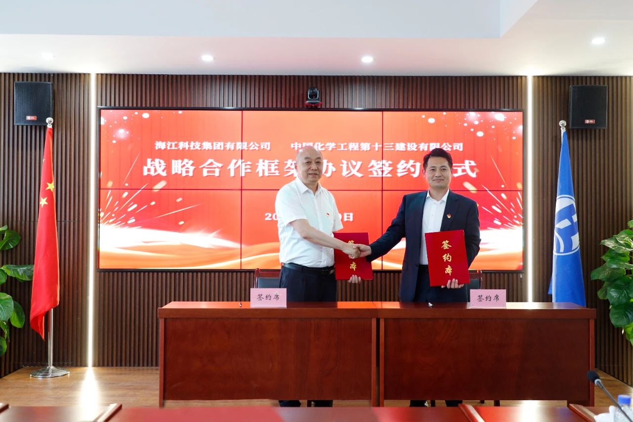 ? ? ? 5月10日,海江集團與中國化學(xué)工程第十三建設(shè)有限公司(簡稱“十三化建”)在海江集團循環(huán)經(jīng)濟產(chǎn)業(yè)基地隆重舉行戰(zhàn)略合作框架協(xié)議簽署儀式,這標(biāo)志著雙方正式建立長期穩(wěn)定的戰(zhàn)略合作關(guān)系。此次合作旨在共同推動石油化工及相關(guān)產(chǎn)業(yè)的環(huán)保創(chuàng)新發(fā)展,實現(xiàn)資源共享、優(yōu)勢互補,攜手共探發(fā)展新動能。