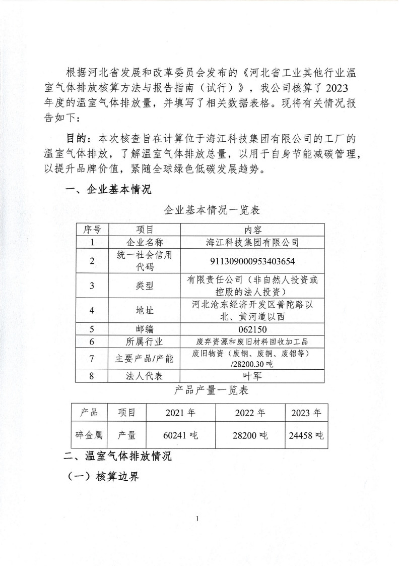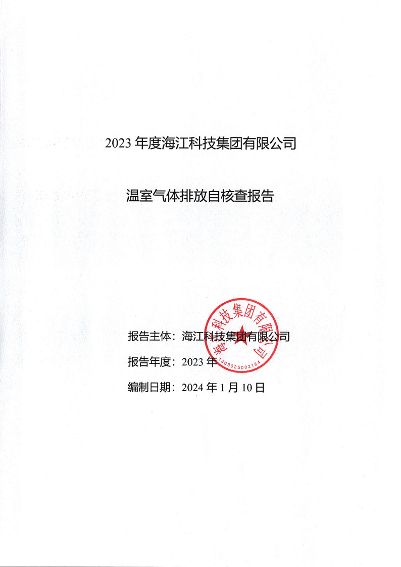 海江科技集團(tuán)有限公司2023年度溫室氣體排放自核查報(bào)告