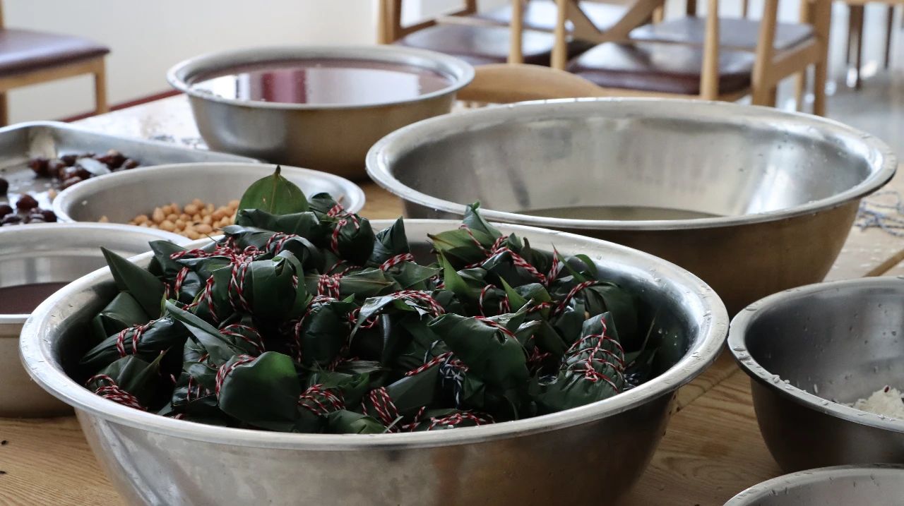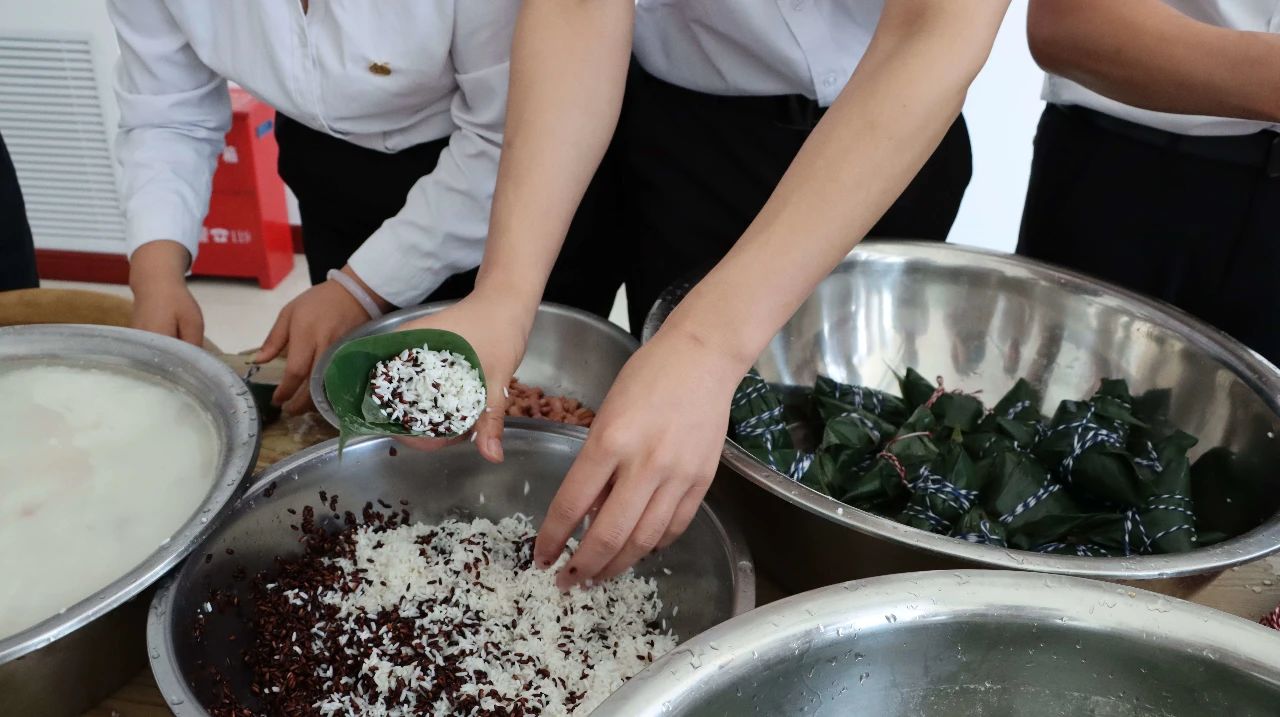 ? ? ? ? ? ?在包粽過程中,員工們互相分享包粽子的技巧和心得,交談各自食粽過端午的舊情往事,現(xiàn)場(chǎng)洋溢著歡聲笑語?!爸匚迳酱搴茫窕ê鲆逊薄?,端午將至,艾葉包裹香甜糯米是時(shí)節(jié)之味,更是千年流轉(zhuǎn)的悠久文明與高情厚意。