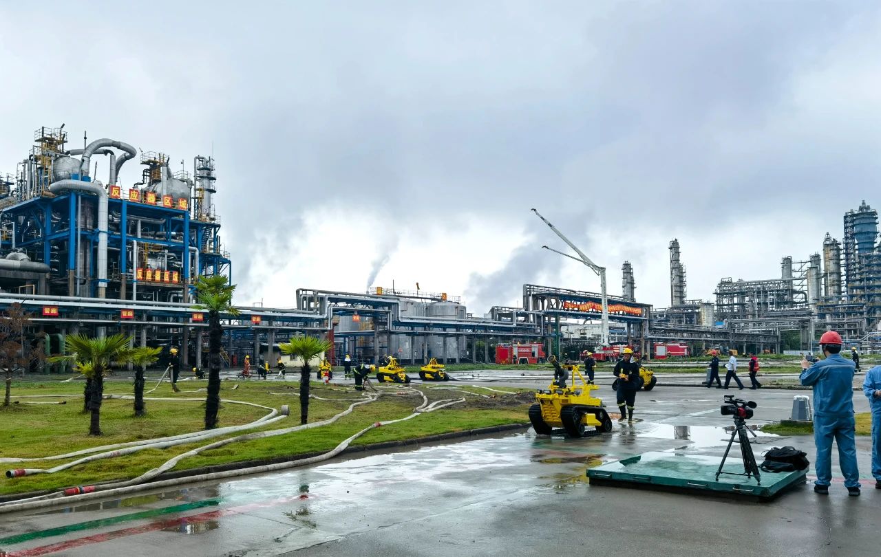 ? ? ? ?演練圍繞石油化工裝置火災(zāi)處置全鏈條、全流程,設(shè)置法蘭泄漏、管道爆燃、管線超壓爆炸、爆炸引發(fā)多處燃燒等災(zāi)害場(chǎng)景,劃分單位應(yīng)急預(yù)案演練、屬地消防力量初期處置演練、消防化工編隊(duì)協(xié)同處置演練等三個(gè)階段,共設(shè)置63大科目,應(yīng)急、公安、醫(yī)療、環(huán)保、水務(wù)、通信、氣象、消防等10支救援隊(duì)伍、90輛車、300余人參與演練。