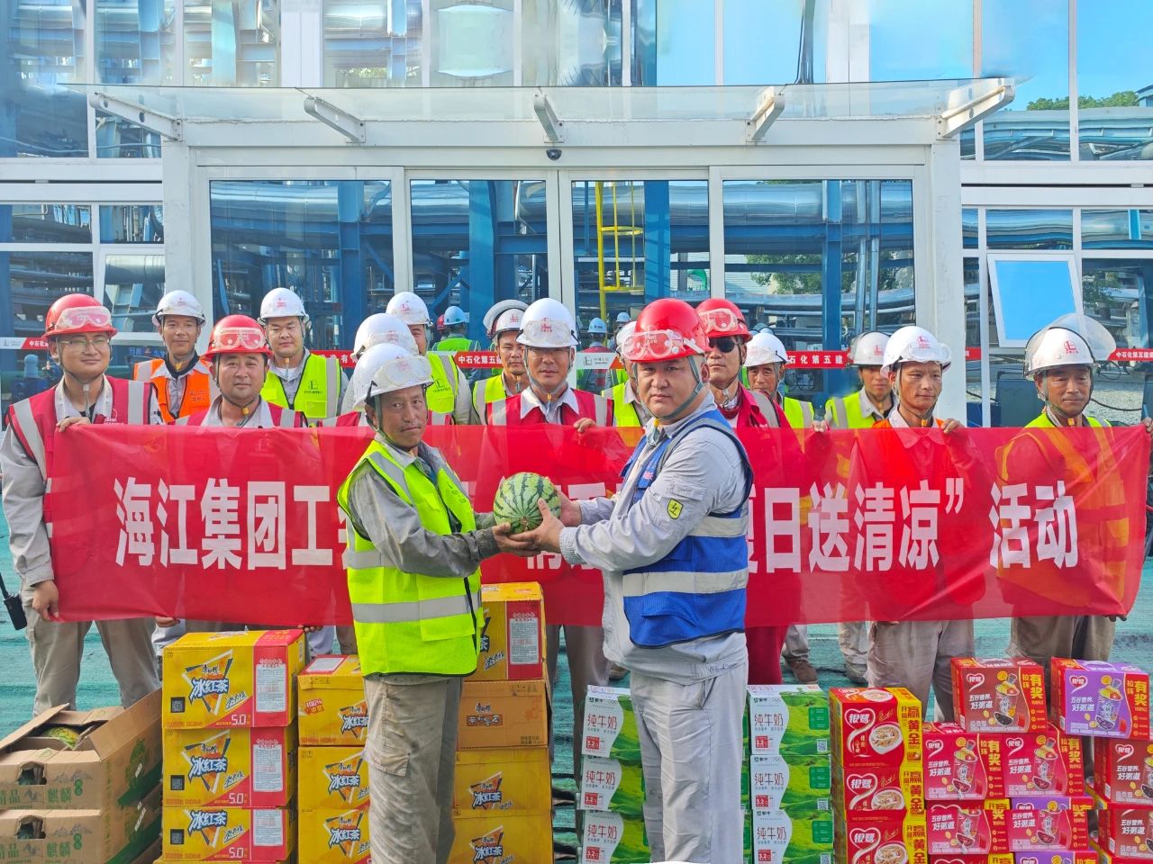 ? ? 為切實(shí)保障高溫期間一線職工的健康安全,傳遞工會(huì)組織的關(guān)懷,海江集團(tuán)于2025年6月9日至19日,精心組織并圓滿開(kāi)展了“情系職工 夏送清涼”專項(xiàng)慰問(wèn)活動(dòng),為堅(jiān)守在項(xiàng)目一線的廣大職工送去夏日清涼與誠(chéng)摯問(wèn)候。