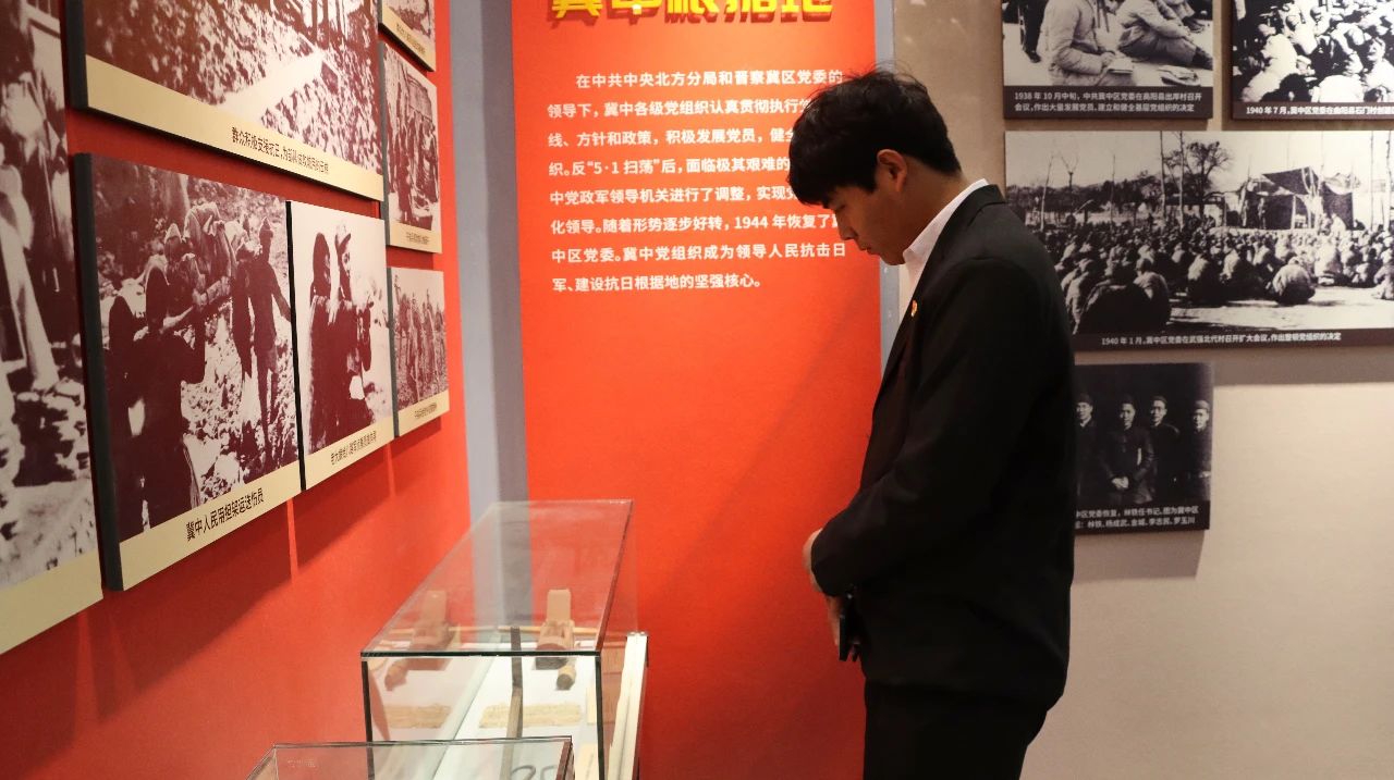 ? ? ? 活動當(dāng)天,海江集團(tuán)黨支部率領(lǐng)黨員代表首先參觀了冀中革命烈士紀(jì)念館,聆聽于主任講解革命先烈事跡。從土地革命時(shí)期、八年抗戰(zhàn)到三年解放戰(zhàn)爭,紀(jì)念館系統(tǒng)展現(xiàn)了冀中軍民為了民族解放流血犧牲、前赴后繼、英勇戰(zhàn)斗在京南大地的光輝歷史。