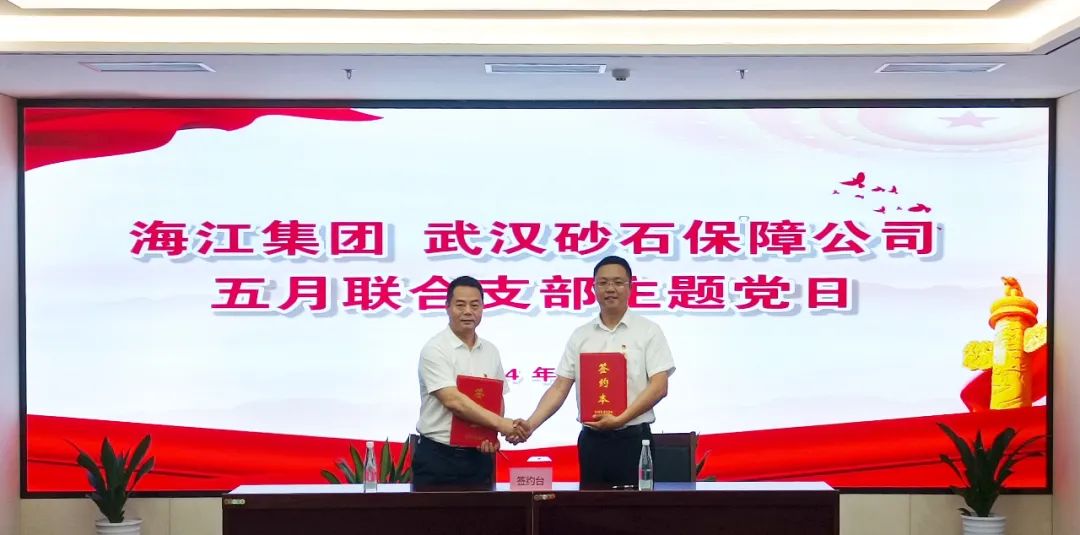 ? ? ? 隨后海江集團(tuán)黨支部書記高琪鎣與長(zhǎng)江產(chǎn)業(yè)集團(tuán)武漢砂石保障公司副總經(jīng)理徐興旺代表雙方簽署了友好黨支部結(jié)對(duì)共建協(xié)議書。這一協(xié)議的簽署,標(biāo)志著雙方不僅在業(yè)務(wù)層面謀求緊密合作,更將在黨建領(lǐng)域建立深度的結(jié)對(duì)共建關(guān)系。
