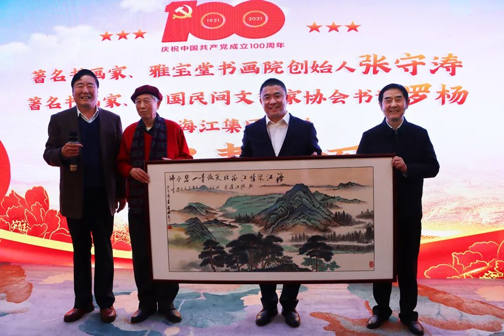 百年輝煌映日月,百家書畫譜新篇。2022年1月16日,建黨百年百家書畫邀請展暨北京市企業(yè)發(fā)展促進會第二屆理事會第三次會議在北京維也納國際酒店隆重開幕。此次展覽展出了包括中國國畫家協(xié)會主席雷正民、原北京市副市長孫安民、中國國際書畫藝術(shù)促進會會長張守濤、中央文史館特約研究員羅楊等的作品100多幅,涵蓋了中國畫、油畫、書法、篆刻、剪紙等多種藝術(shù)形式,回顧和展示了中國共產(chǎn)黨100年來走過的光輝歷程,熱情謳歌了建黨以來所取得的光輝業(yè)績和偉大成就。海江集團董事長劉海江、黨支部書記高琪鎣、總裁褚龍、副總李國棟等應邀出席。